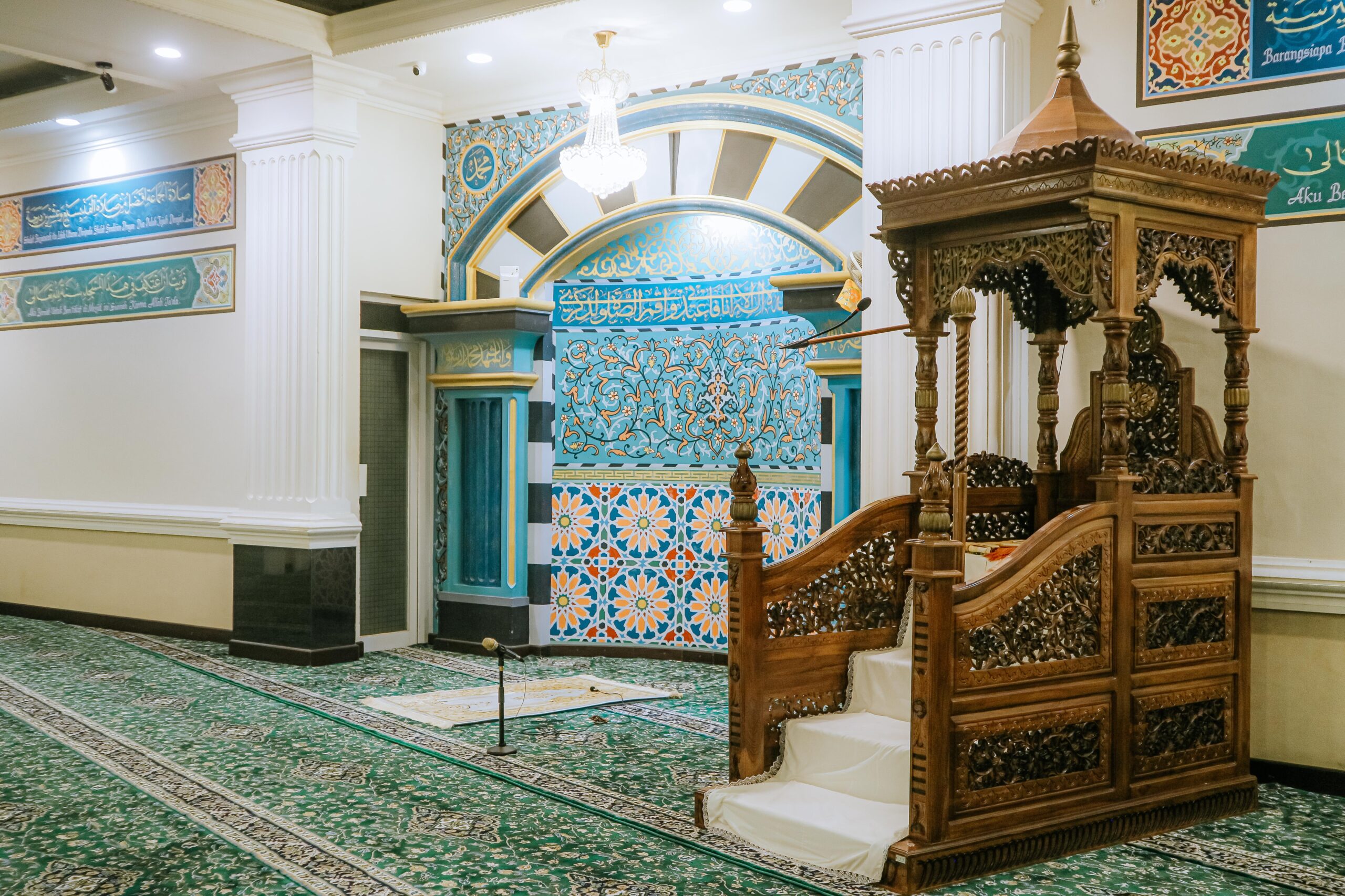 A mosque with an exclusive interior concept that stands out, creating a strong Islamic atmosphere and a comfortable feeling during prayer....