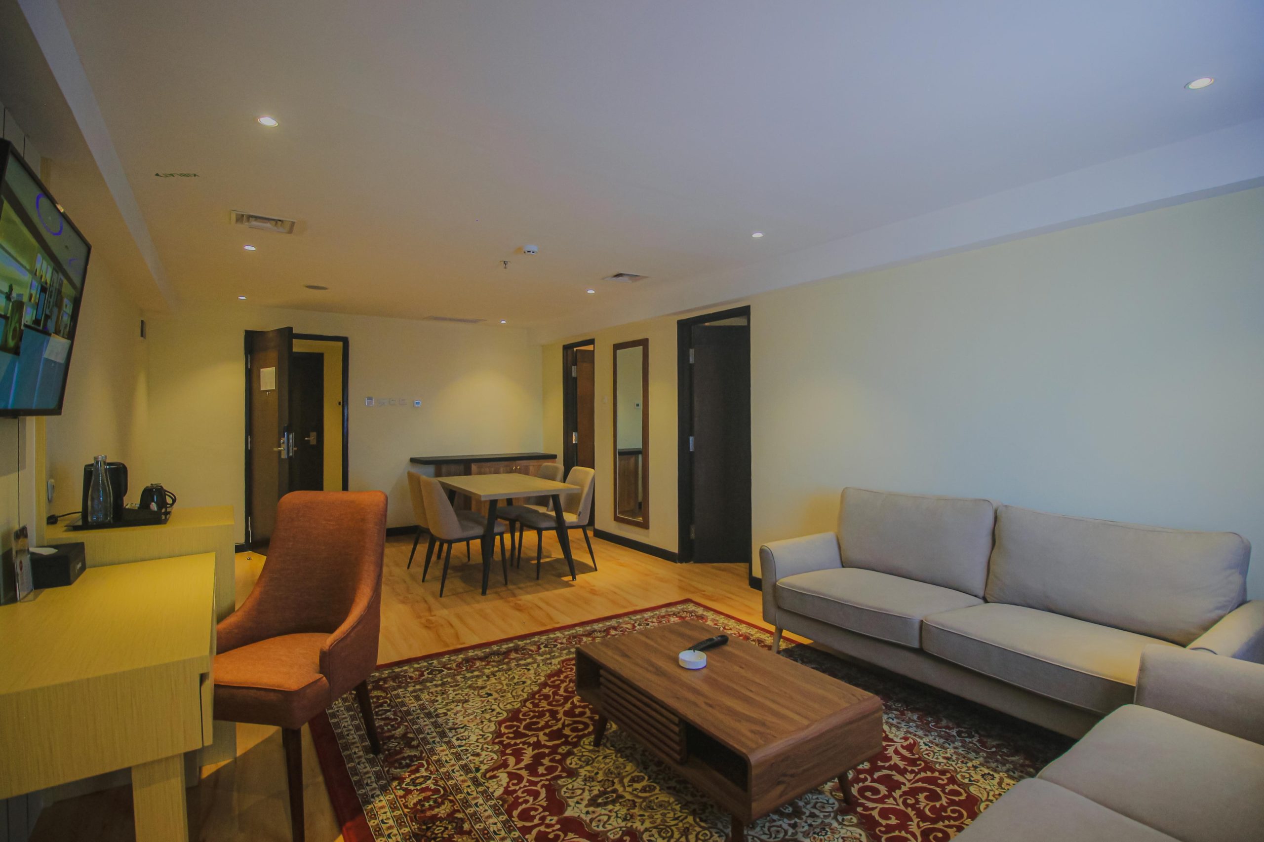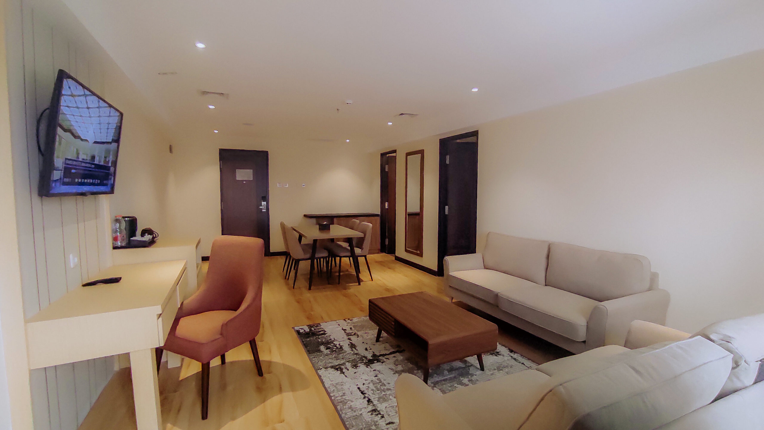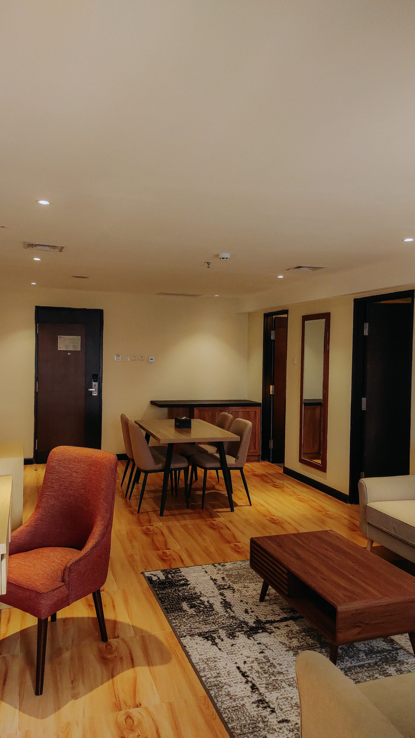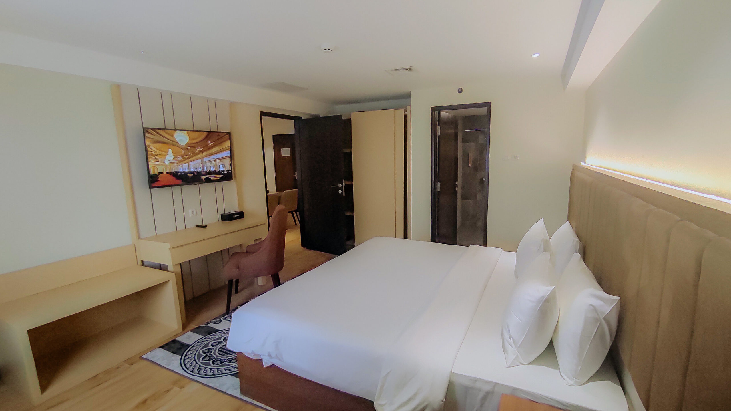 Our Business Suites offer a seamless blend of comfort and functionality. Featuring a separate bedroom and living area, these suites provide ample space to work, relax, and entertain. Stay productive with a dedicated work desk and complimentary Wi-Fi, then unwind in style with upscale amenities and elegant decor.