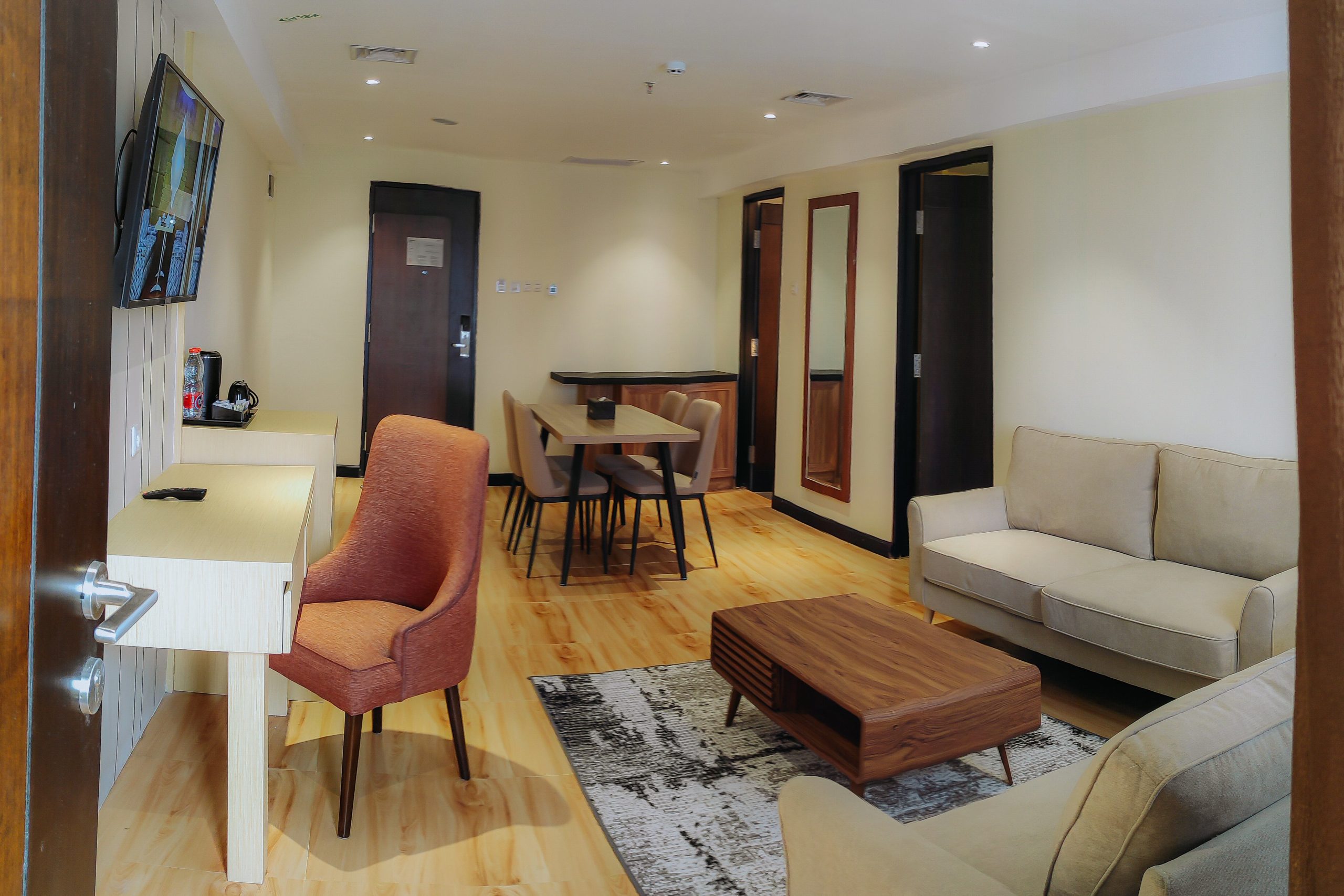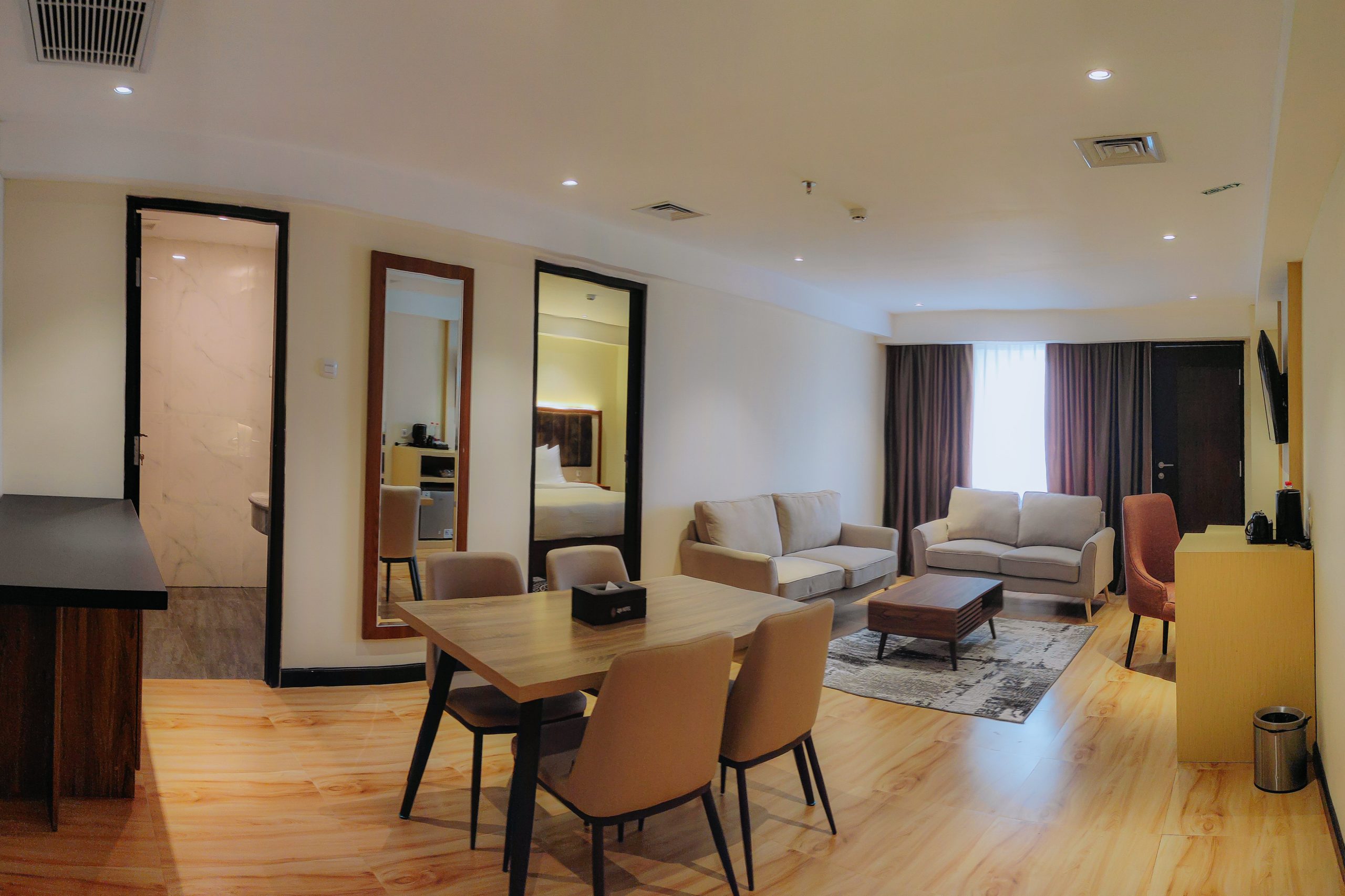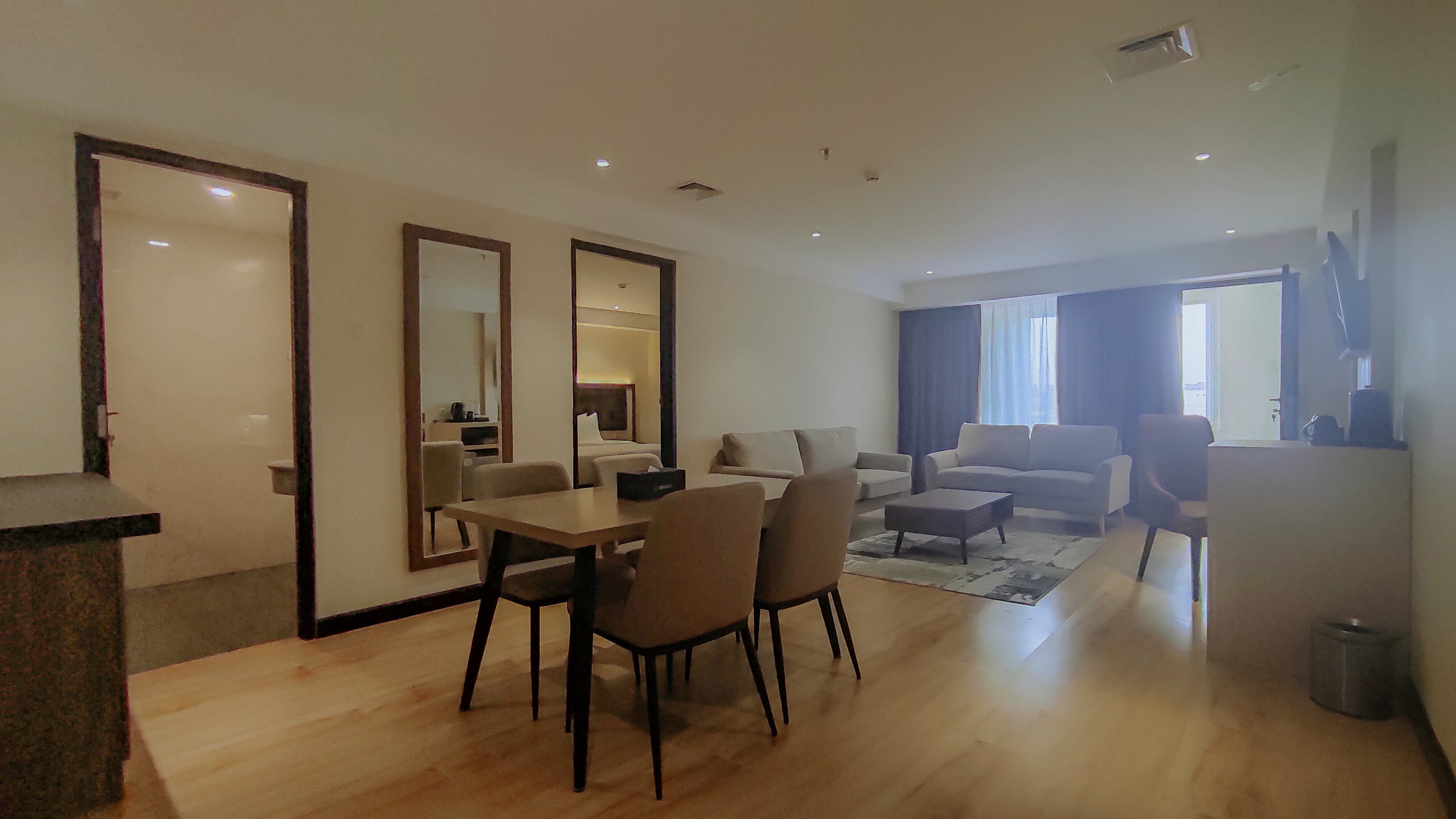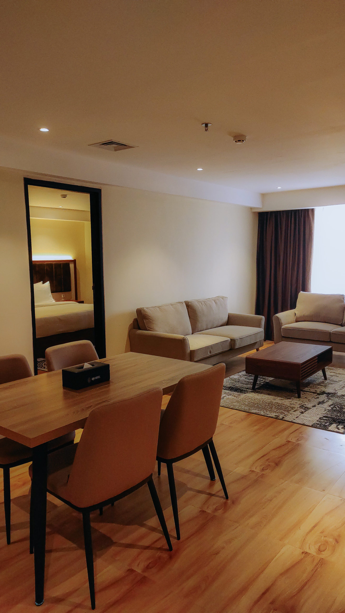 Our Business Suites offer a seamless blend of comfort and functionality. Featuring a separate bedroom and living area, these suites provide ample space to work, relax, and entertain. Stay productive with a dedicated work desk and complimentary Wi-Fi, then unwind in style with upscale amenities and elegant decor.