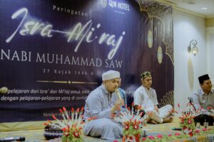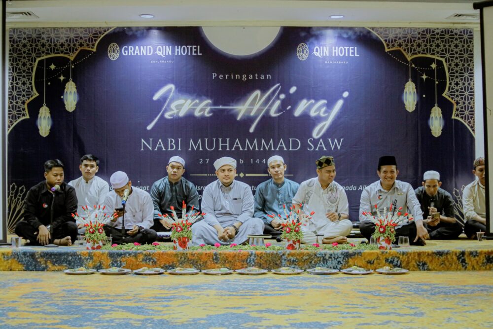 Banjarbaru, 28 Januari 2025 – Dalam rangka memperingati Isra Mi’raj Nabi Muhammad SAW 1446 H, Grand Qin Hotel Banjarbaru bersama Qin Hotel Banjarbaru menggelar acara keagamaan yang penuh hikmah dan kebersamaan. Kegiatan ini berlangsung di Berlian Meeting Room Grand Qin Hotel Banjarbaru dan dihadiri oleh seluruh karyawan serta tamu istimewa, yaitu anak-anak asuh dari Yayasan Rumah Yatim Darul Hikmah.