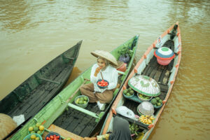 Di sini, transaksi terjadi di atas air. Tawa renyah para pedagang dan proses tawar-menawar yang hangat menjadi melodi pagi yang tidak akan Anda temukan di pusat perbelanjaan modern manapun.